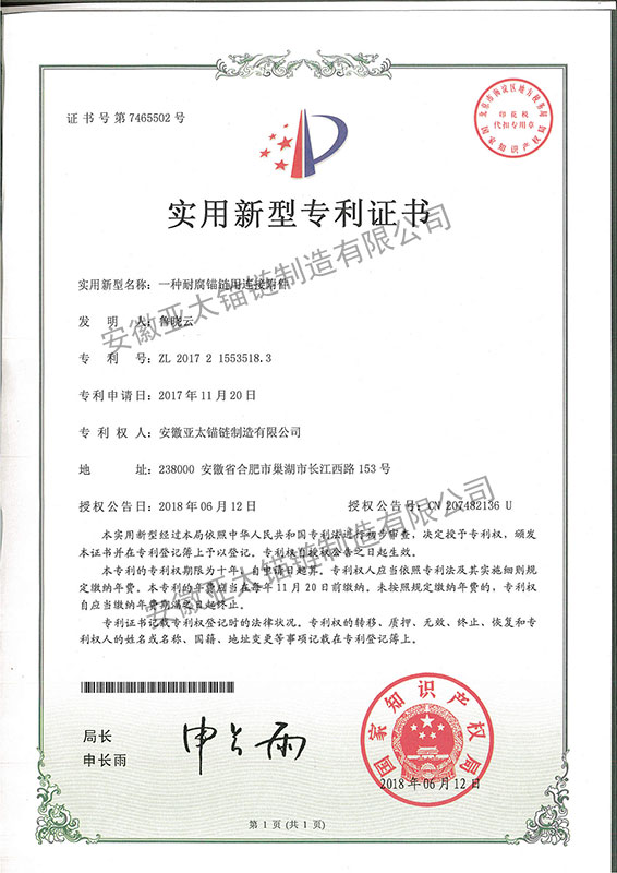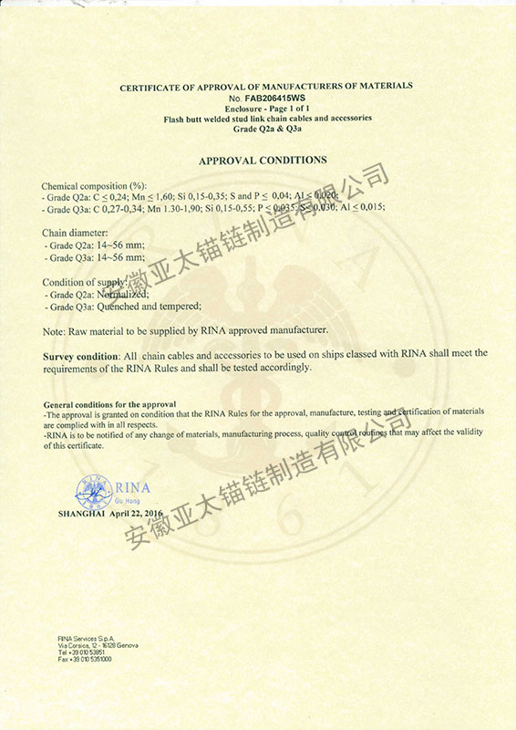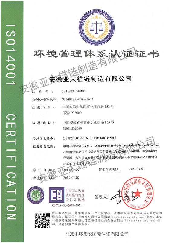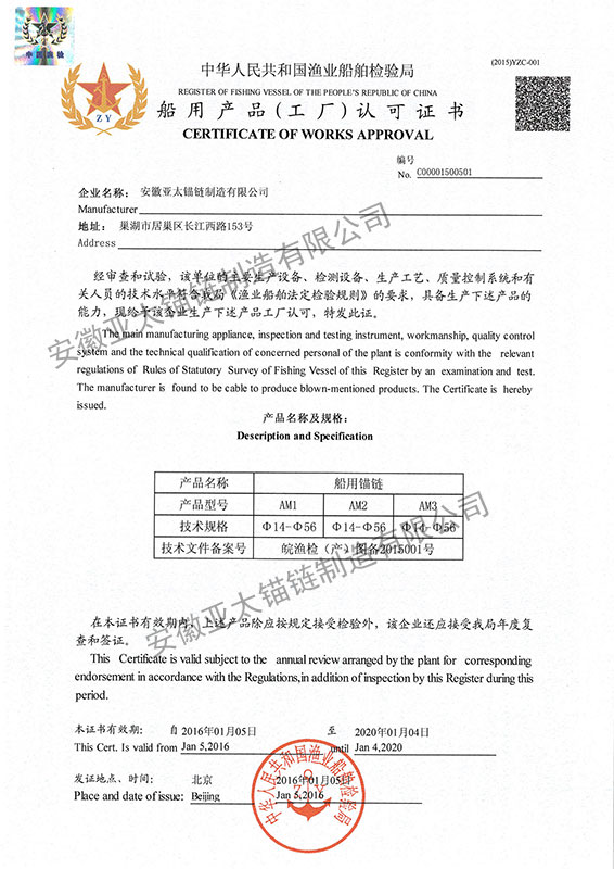 安徽亞太錨鏈制造有限公司是國家高新技術(shù)企業(yè),也是國家GB/T 549-2017《電焊錨鏈》標(biāo)準(zhǔn)的起草和制定單位之一。公司旗下設(shè)有錨鏈分廠、浮標(biāo)分廠、舾裝件分廠等多個分廠。公司專業(yè)從事φ12.5mm-φ107mm二、三級船用錨鏈、浮標(biāo)錨鏈、錨鏈附件,錨、船舶曬裝產(chǎn)品、航標(biāo)、系船浮、船型標(biāo)、多種規(guī)格海洋監(jiān)測浮標(biāo)及航標(biāo)燈等產(chǎn)品的生產(chǎn)、安裝和服務(wù)。目前公司的產(chǎn)品銷往全國各地船廠、碼頭、航標(biāo)處、航道局、海洋局,并已走上國際市場,如東南亞、中東、歐美等國家。